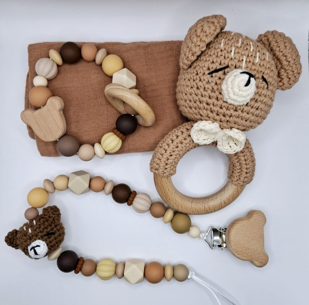 נשכן חרוזים – נשכן בעבודת יד, משולב חרוזי סיליקון ודמות מעץ טבעי. מרגיע את חניכי התינוק ומסייע בתהליך בקיעת השיניים.