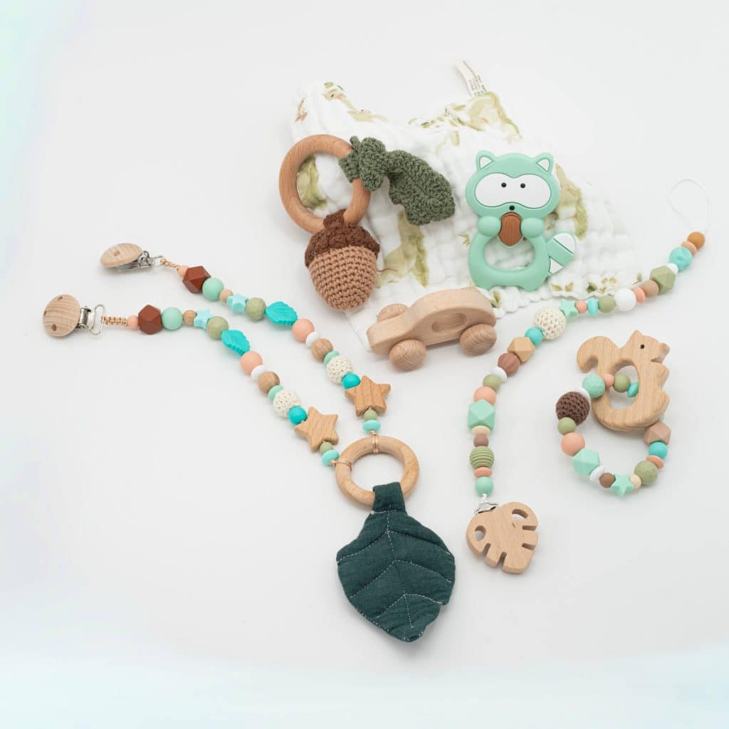 נשכן חרוזים – נשכן בעבודת יד, משולב חרוזי סיליקון ודמות מעץ טבעי. מרגיע את חניכי התינוק ומסייע בתהליך בקיעת השיניים.